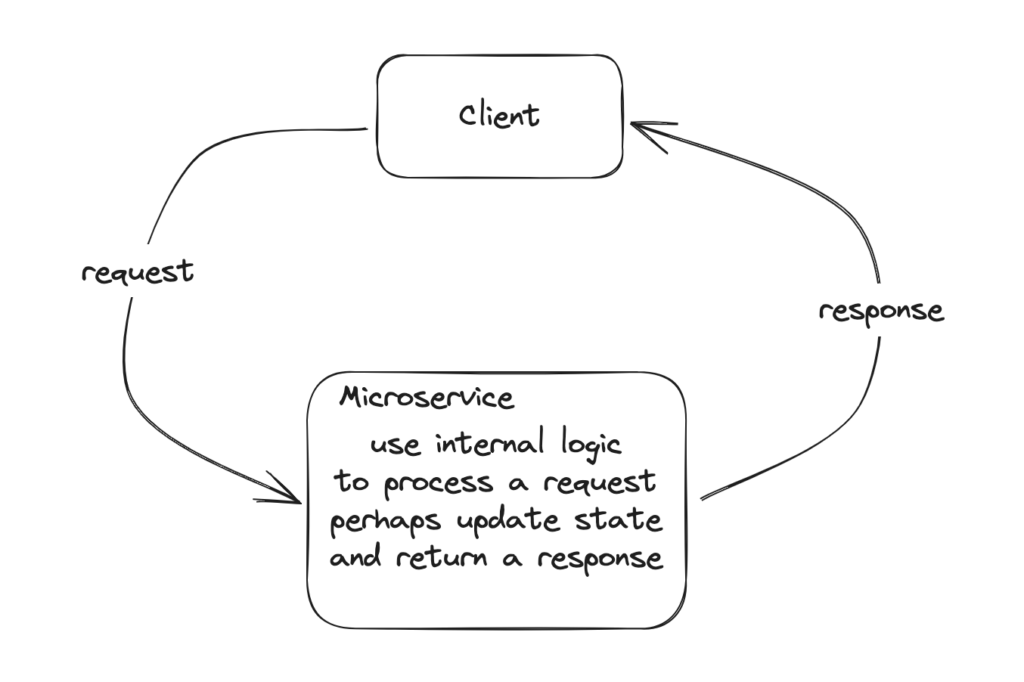 We'll specifically examine request/response services here. A client request comes in, we run some logic, and send a request back. We have an input (request), we may have some state, either in memory or in a database, and we have an output (response).
